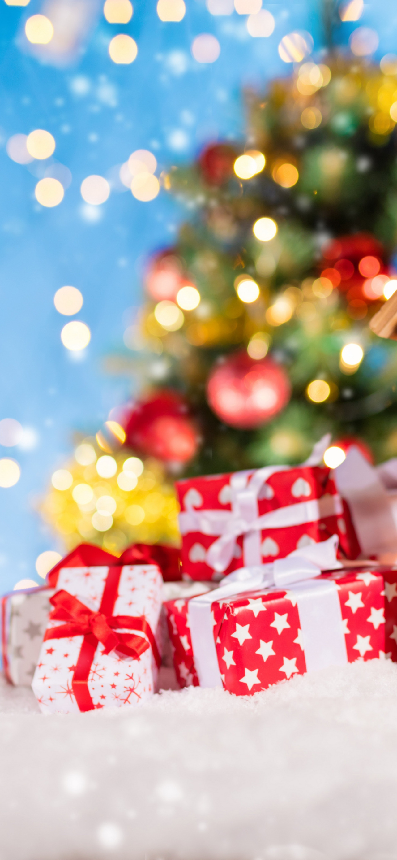 Назад к обои зима, снег, украшения, снежинки, подарок, елка, новый год, Рождество