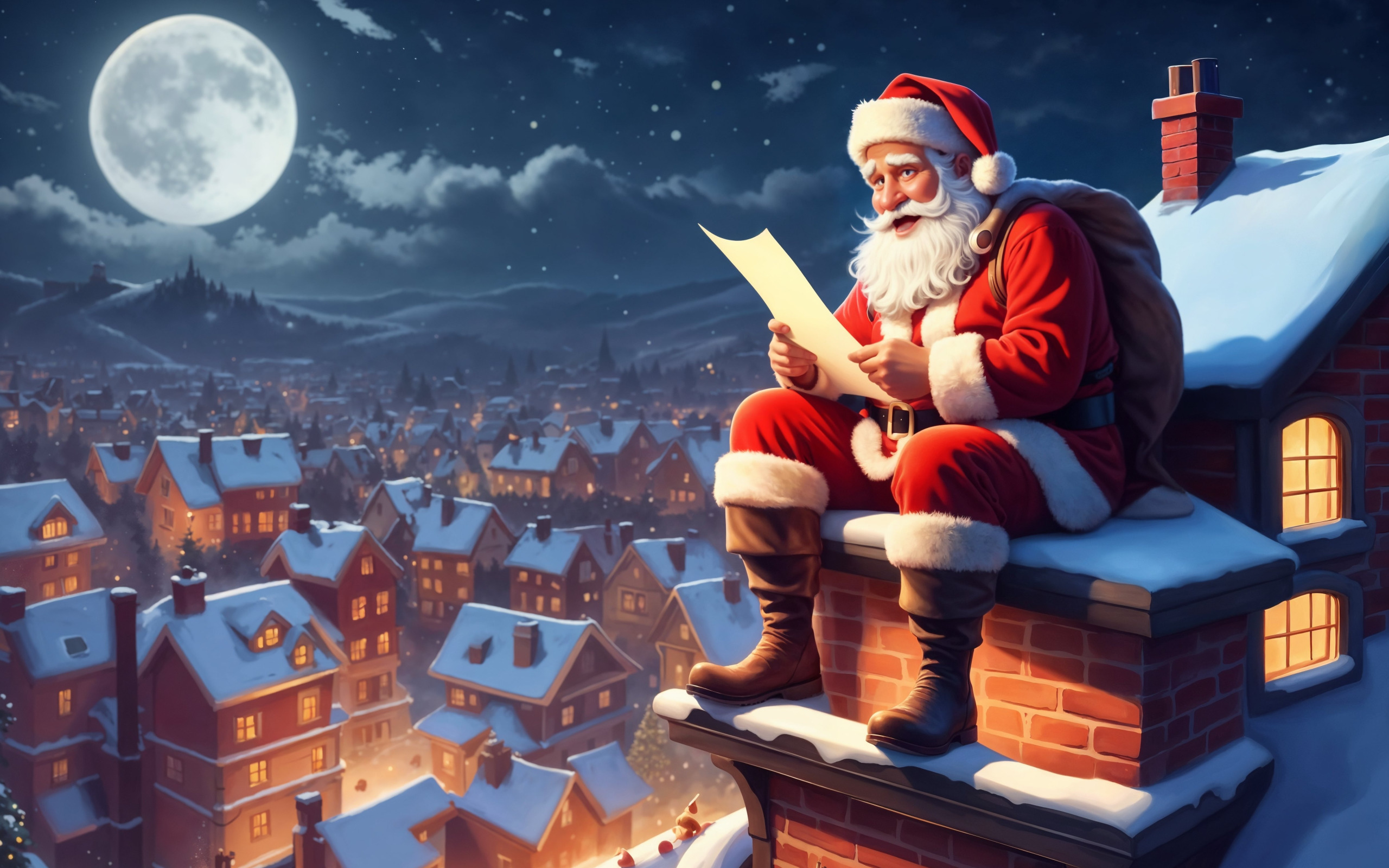 Назад к обои зима, крыша, снег, ночь, луна, новый год, дома, Рождество