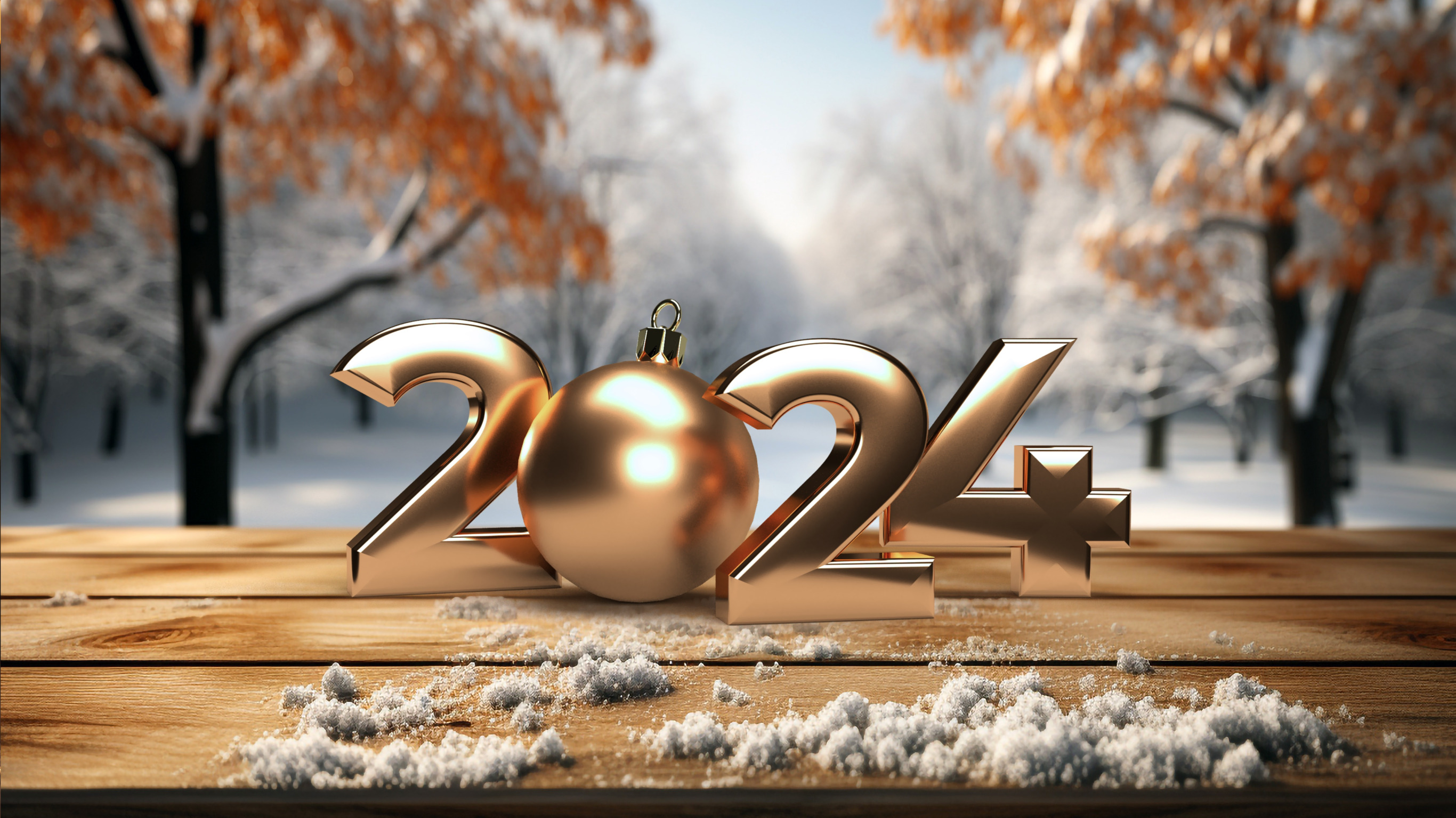 зима, осень, снег, деревья, фон, золото, новый год, цифры