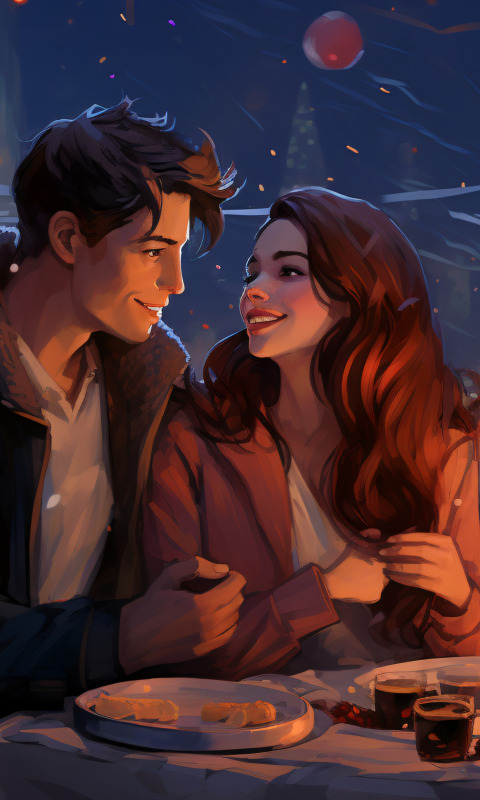 Назад к обои девушка, радость, ночь, улыбка, стол, человек, елка, новый год
