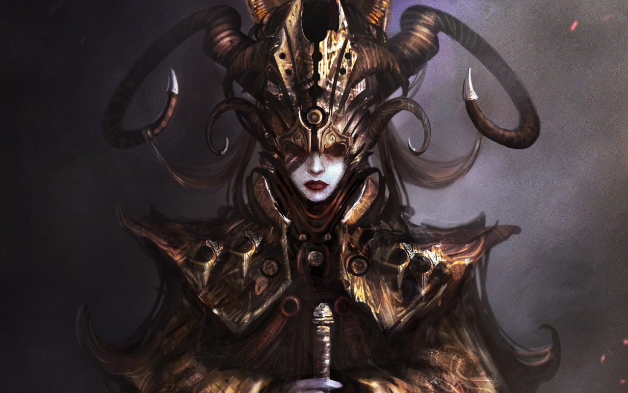 Назад к обои девушка, арт, рога, королева, cloudminedesign