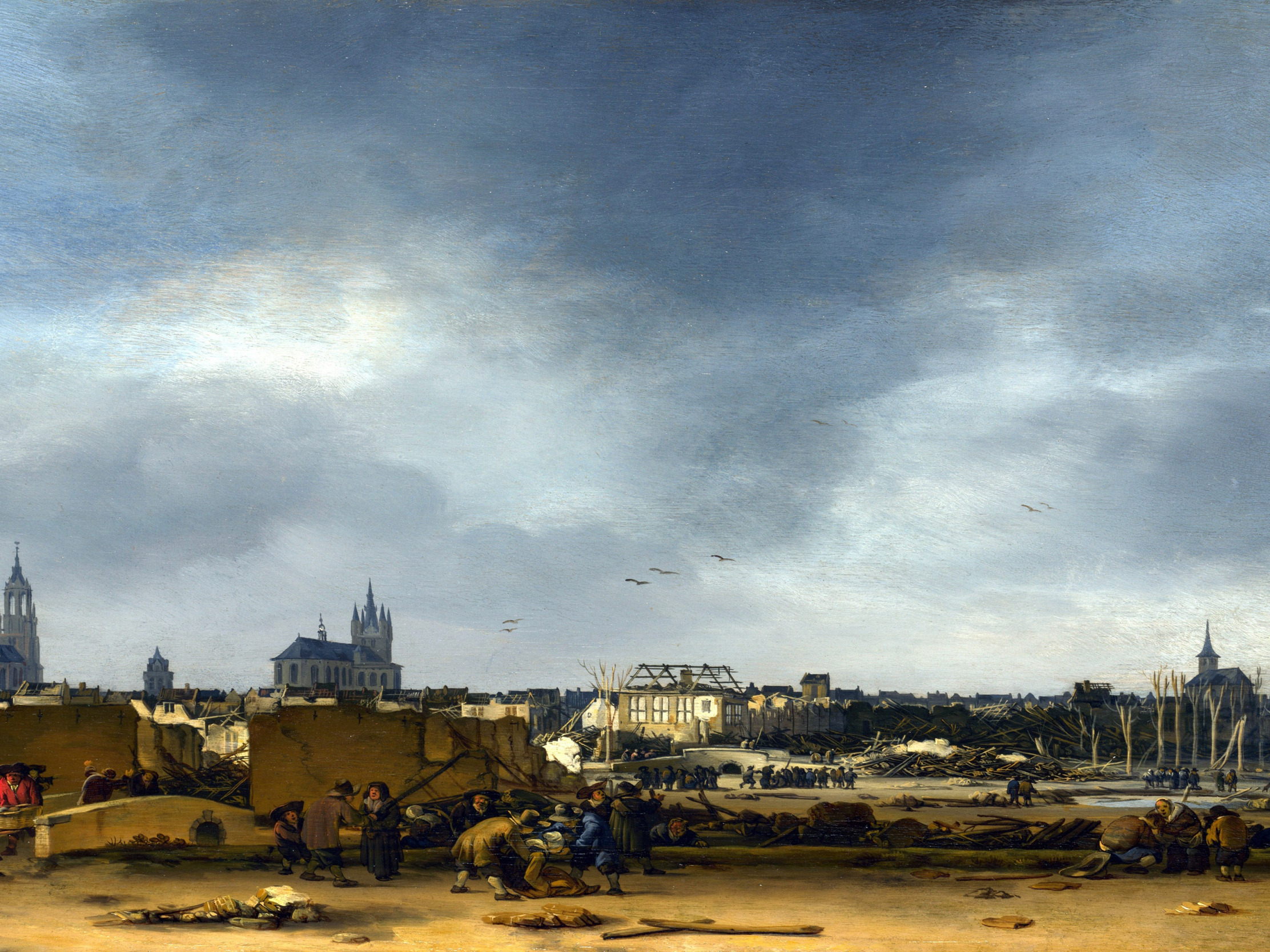 Назад к обои город, картина, панорама, городской пейзаж, Egbert van der Poel, Эгберт ван дер Пул, Вид Делфта после Взрыва 1654 года