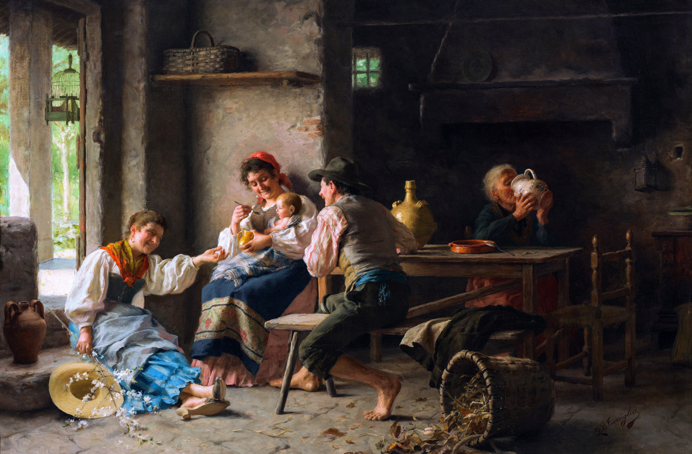 Назад к обои женщина, интерьер, картина, мужчина, младенец, итальянский художник, Giovanni Battista Torriglia, Джованни Баттиста Торрилья