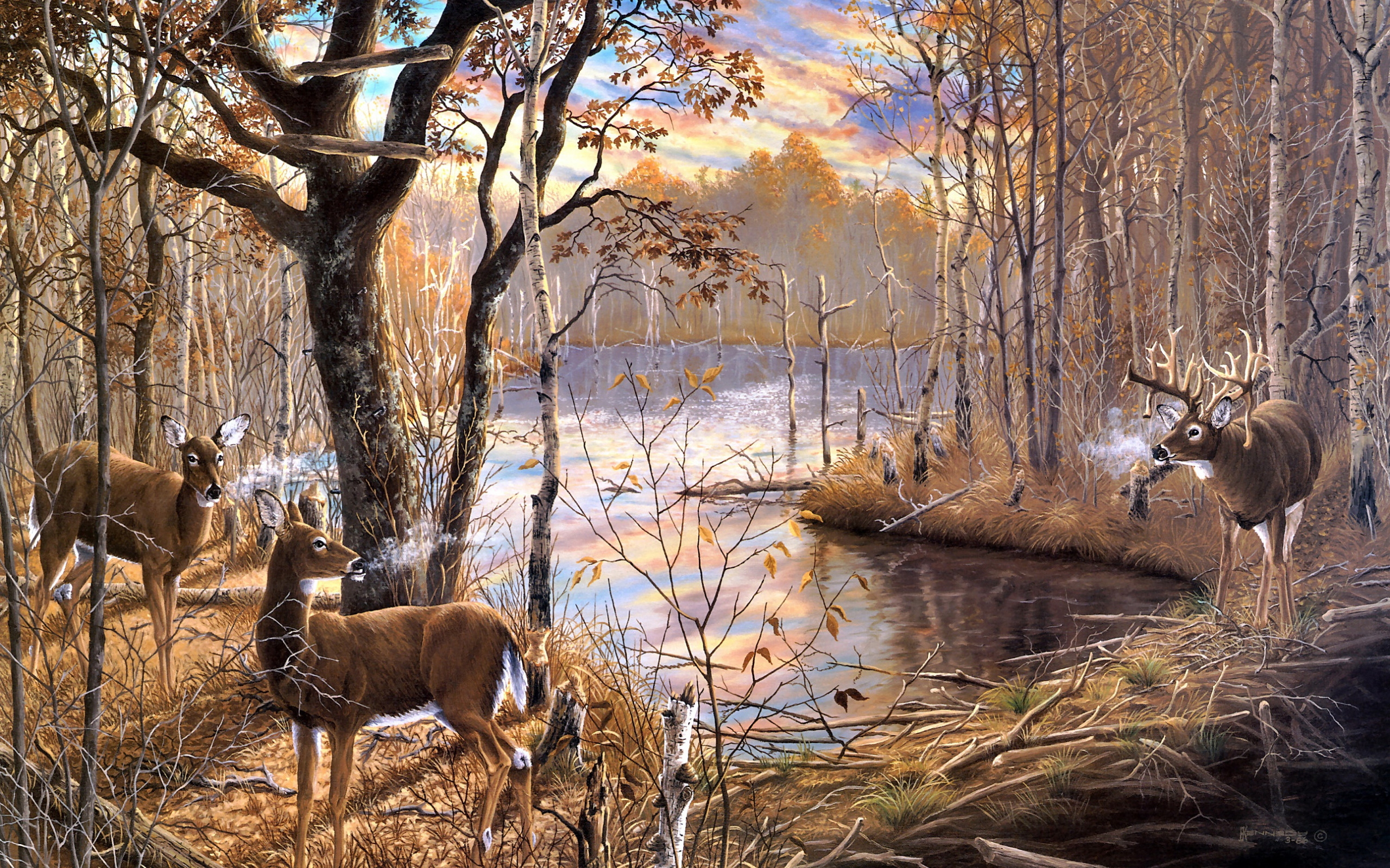 Назад к обои осень, лес, ветки, рисунок, картина, олень, арт, три