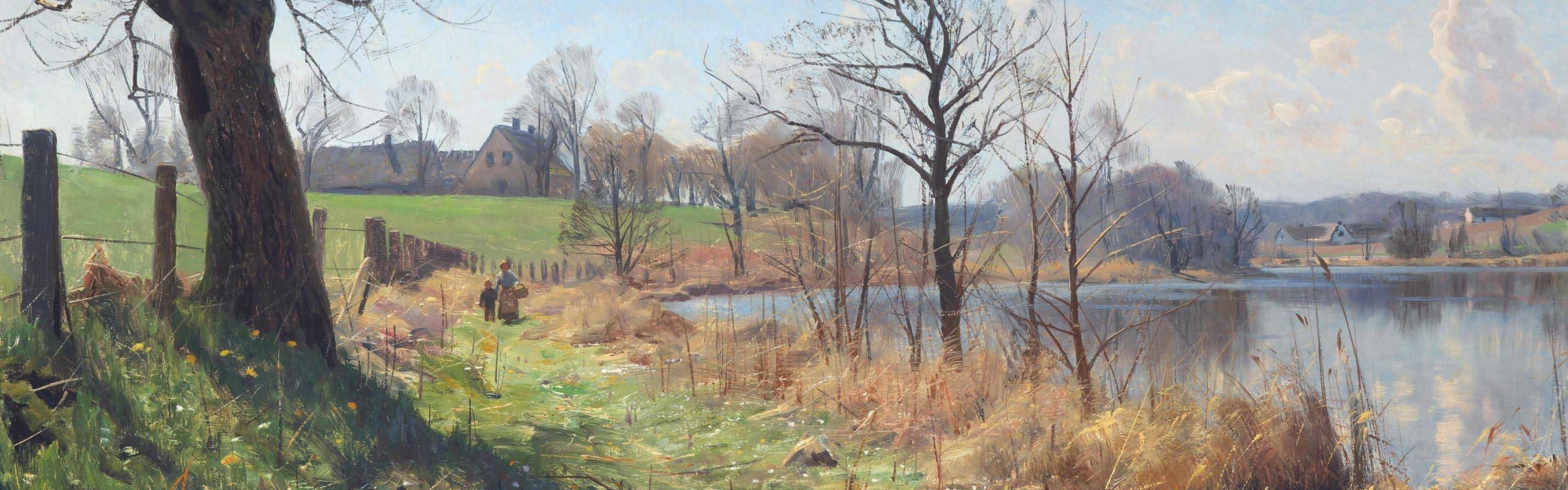 датский живописец, 1916, Петер Мёрк Мёнстед, Peder Mørk Mønsted, Danish realist painter, A View of Hornbæk, Вид на Хорнбек, oil on canvas
