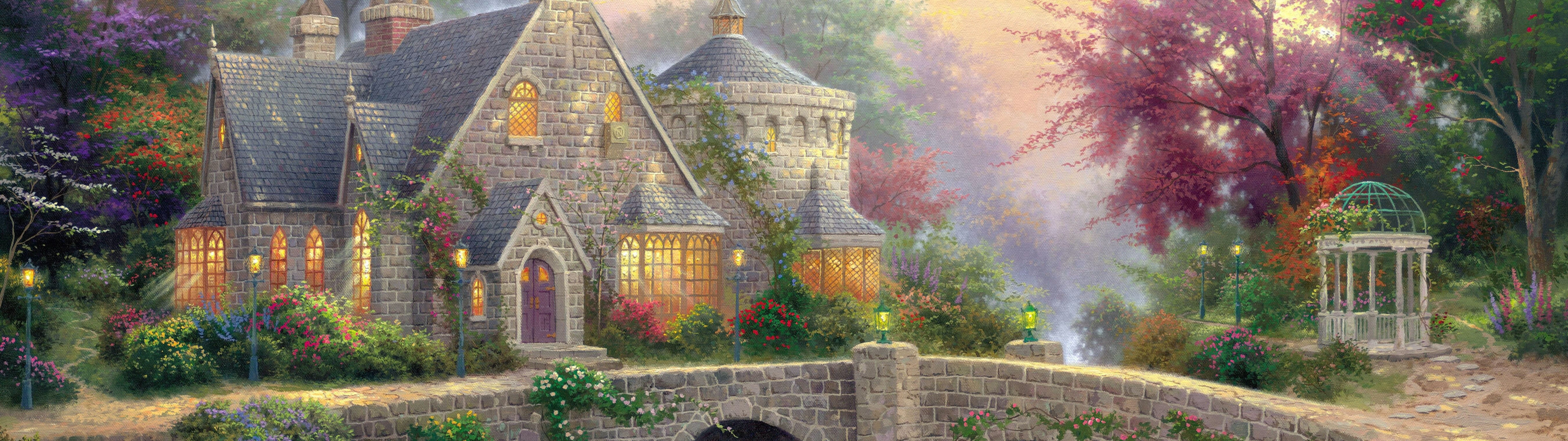 Назад к обои лето, мост, река, colorful, фонари, живопись, коттедж, беседка