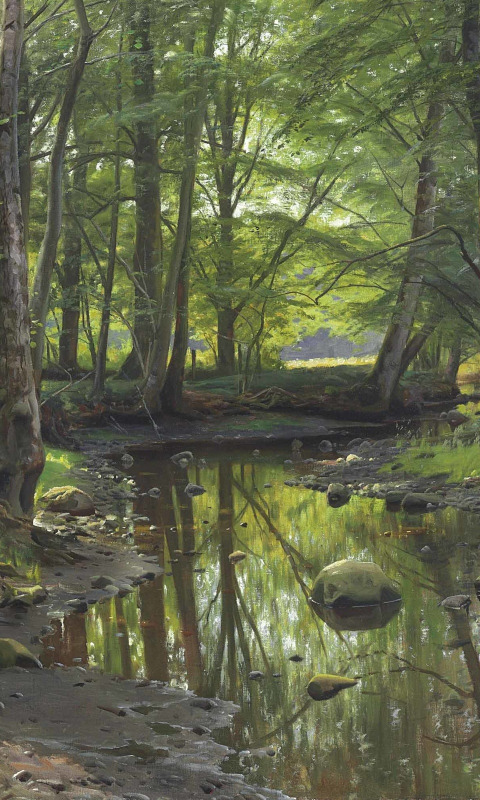 Назад к обои датский живописец, 1925, Лесной ручей, Петер Мёрк Мёнстед, Peder Mørk Mønsted, Danish realist painter, A Stream in the Forest