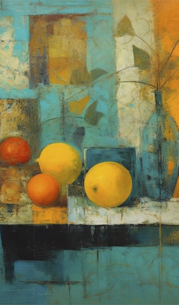 Назад к обои листья, ветки, трещины, стол, лимон, краски, картина, подтеки