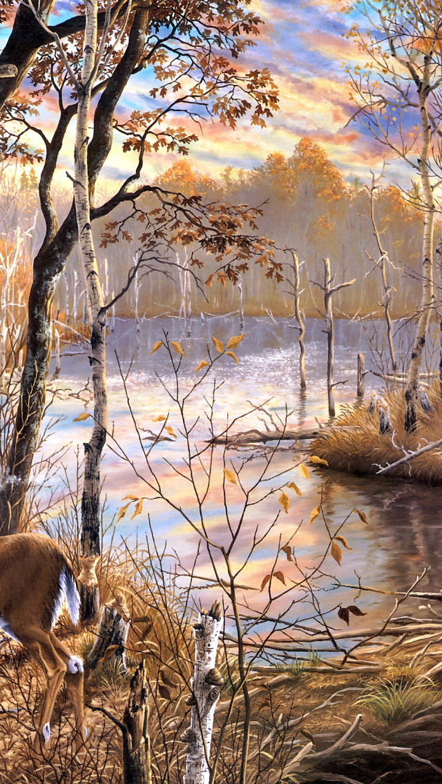 Назад к обои осень, лес, ветки, рисунок, картина, олень, арт, три