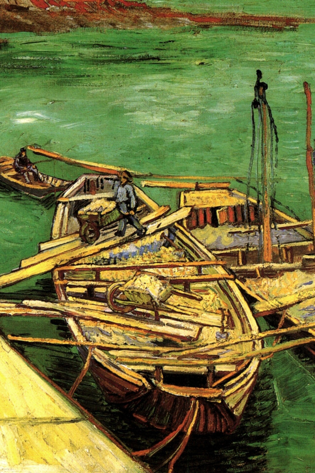Назад к обои лодка, Vincent van Gogh, флаг Франции, Unloading Sand Barges, Quay with Men