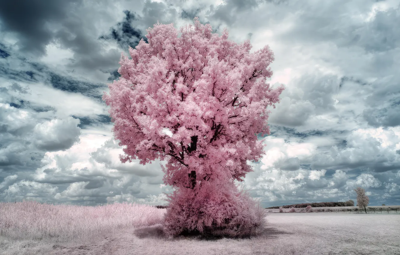 White, trees, pink, clouds, infrared, surreal, pastel обои на телефон (фото, картинки)