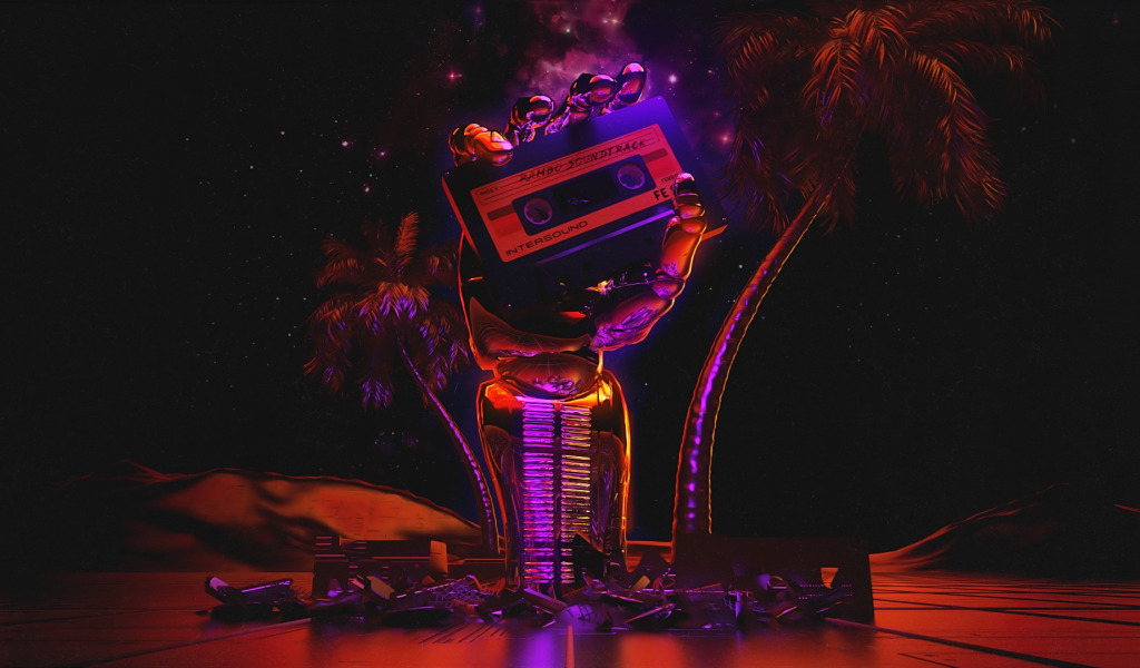 Назад к обои стиль, музыка, пальмы, рендеринг, касета, Music, 80s, style