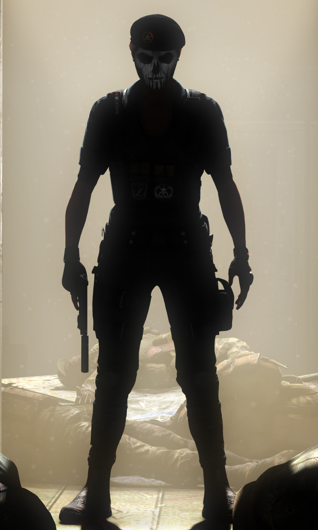 Назад к обои девушка, рендеринг, пистолет, череп, маска, Tom Clancy, трупы, Rainbow Six Siege