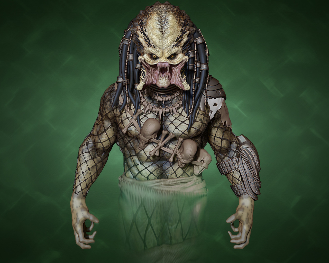 Назад к обои рендеринг, монстр, хищник, инопланетянин, Predator, зеленый фон