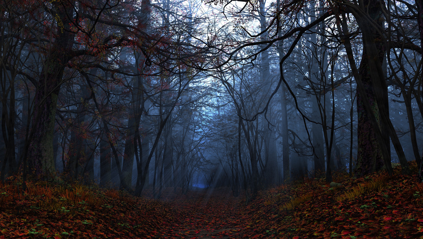 Назад к обои осень, лес, листья, лучи, графика, digital, Elegy