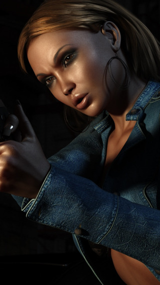Назад к обои девушка, пистолет, куртка, рендер, джинсовая