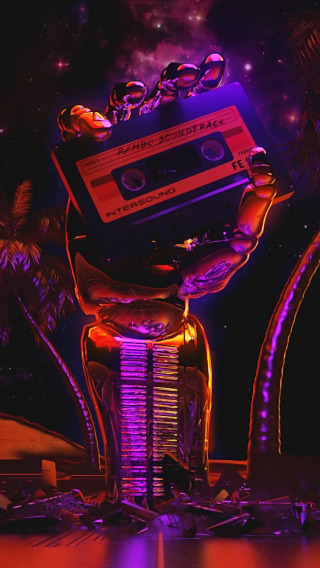 Назад к обои стиль, музыка, пальмы, рендеринг, касета, Music, 80s, style