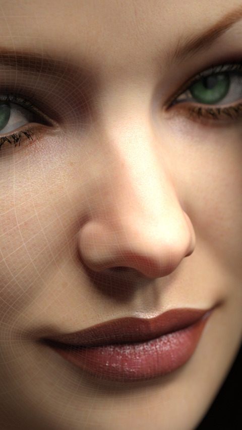 Назад к обои взгляд, девушка, лицо, рендеринг, сетка, зеленые глаза