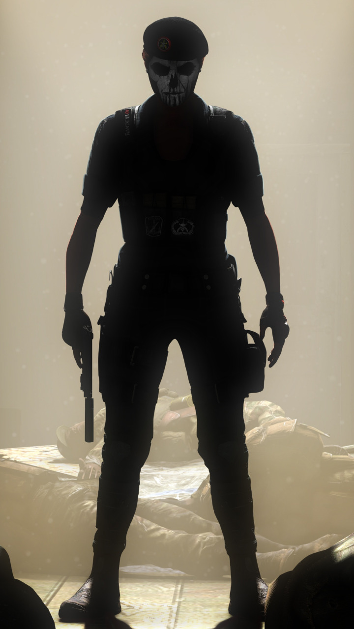 Назад к обои девушка, рендеринг, пистолет, череп, маска, Tom Clancy, трупы, Rainbow Six Siege