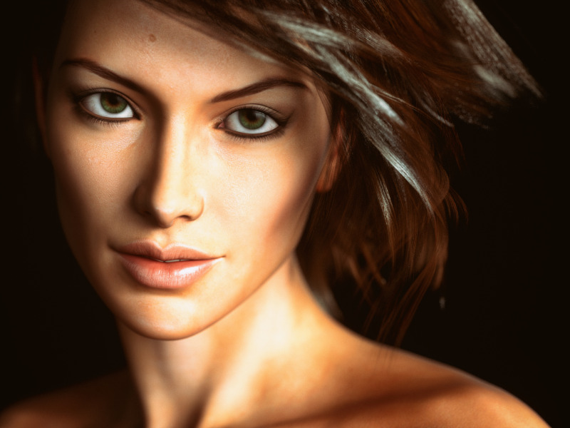 Назад к обои взгляд, девушка, лицо, рендеринг, красота