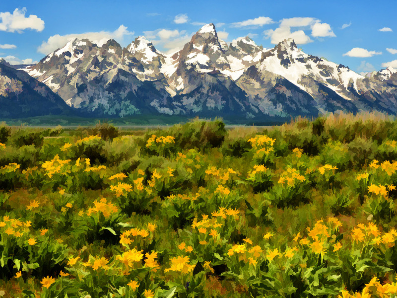Назад к обои небо, пейзаж, цветы, горы, природа, луг