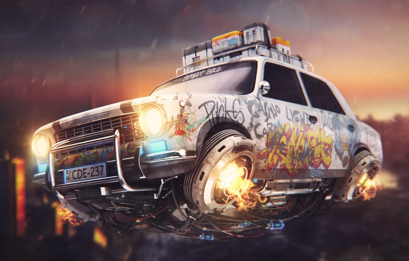 Машина, авто, фантастика, fire, fantasy, science fiction, art, illustration обои на телефон (фото, картинки)