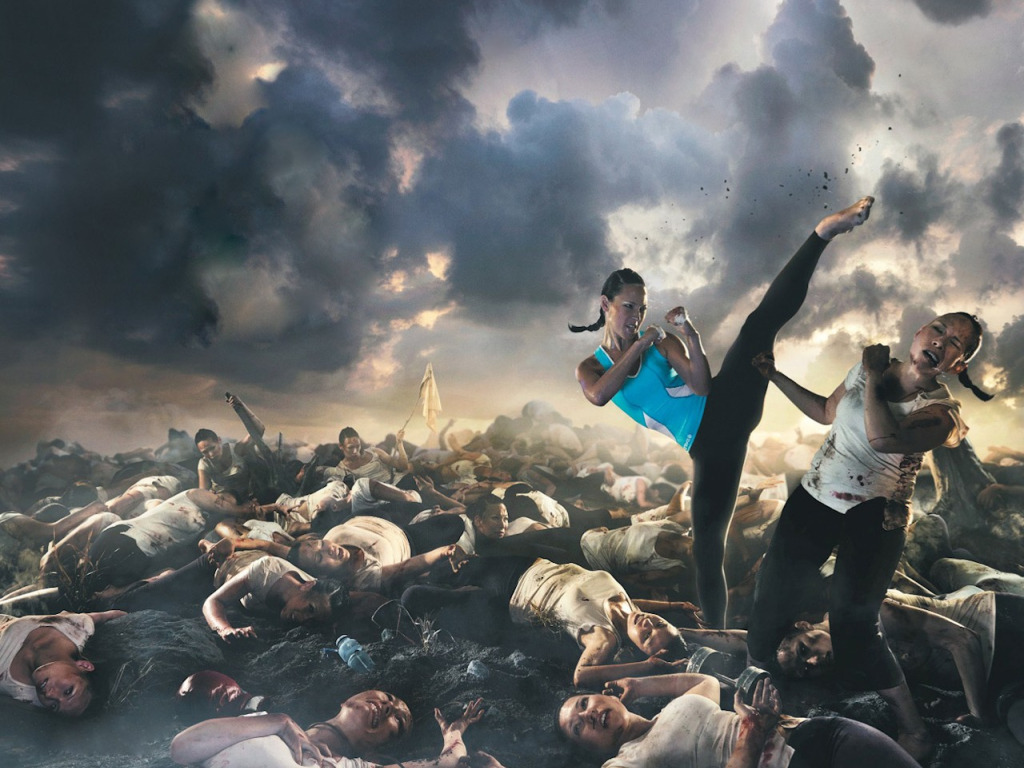 Назад к обои девушка, бой, удар