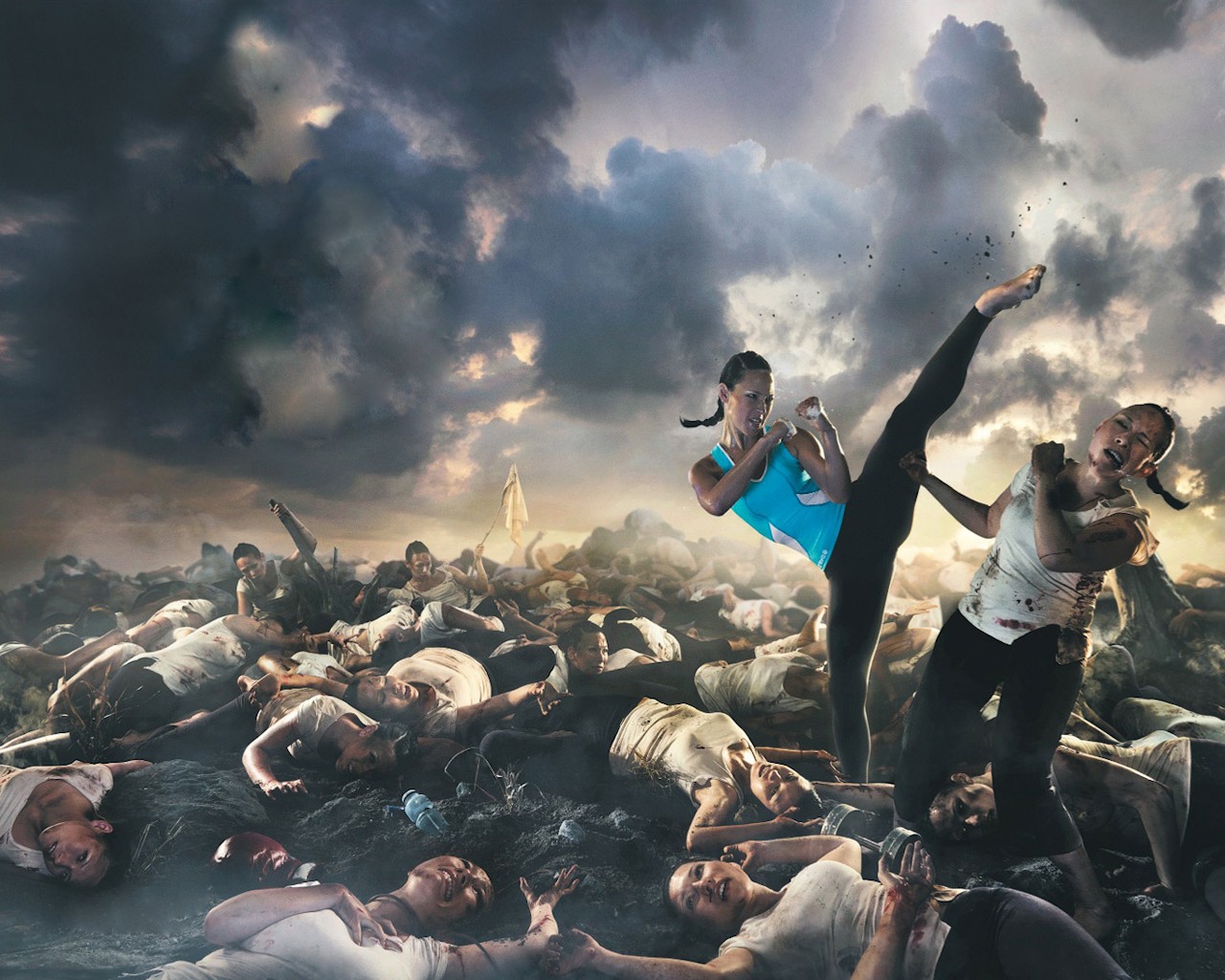 Назад к обои девушка, бой, удар