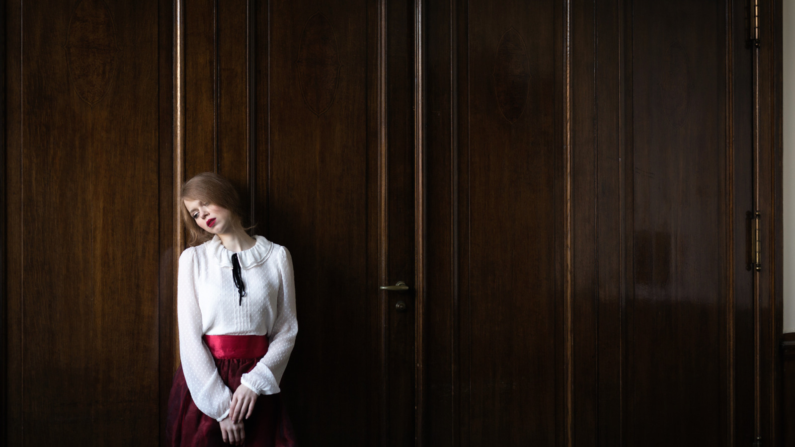 Назад к обои девушка, макияж, дверь, Sandra Plajzer