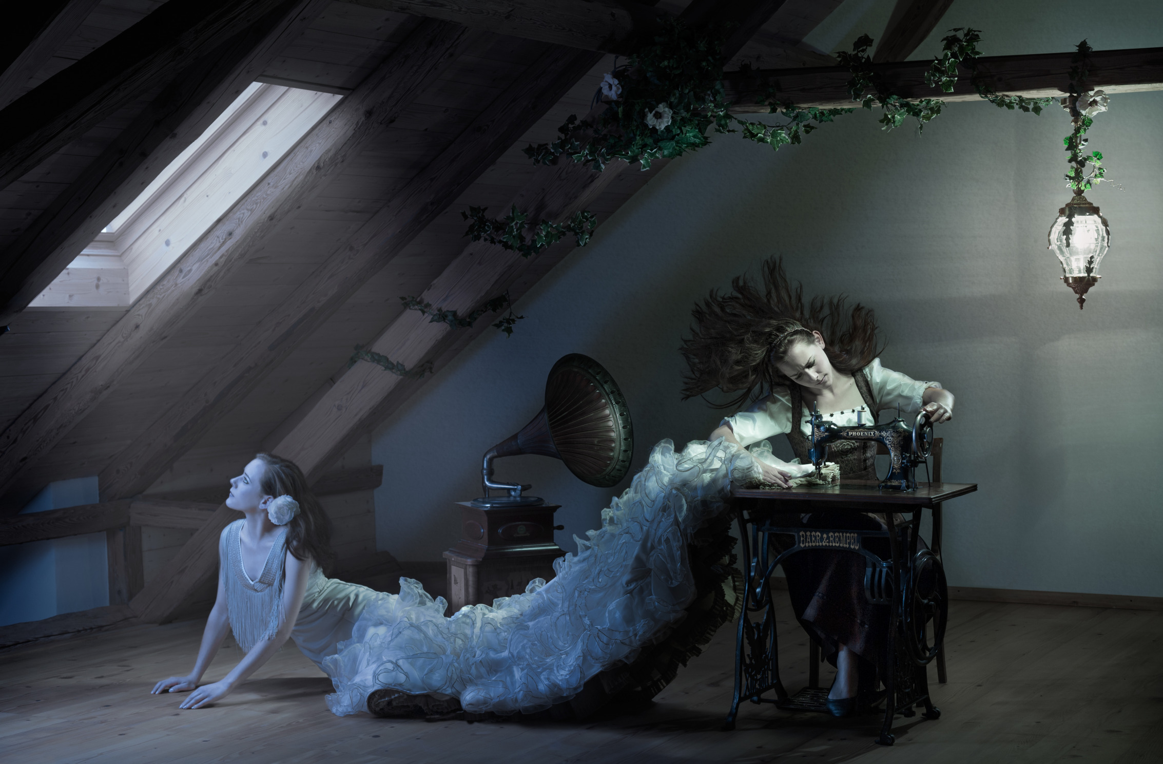 Назад к обои девушка, платье, швея