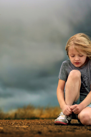 дорога, тучи, ветер, девочка, непогода, Thunderstorm