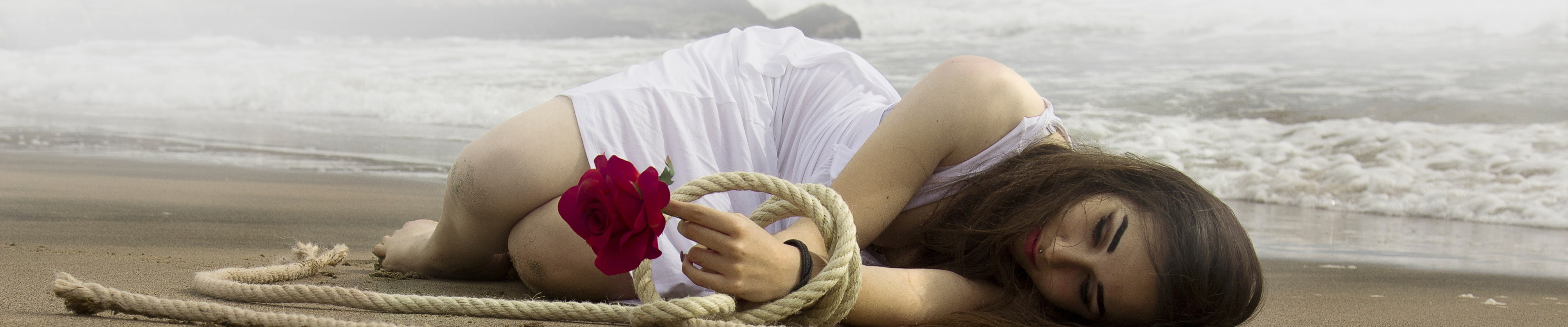девушка, берег, веревка