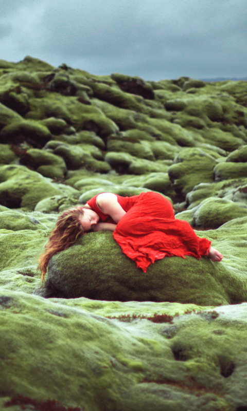 девушка, камни, сон, в красном, Lizzy Gadd