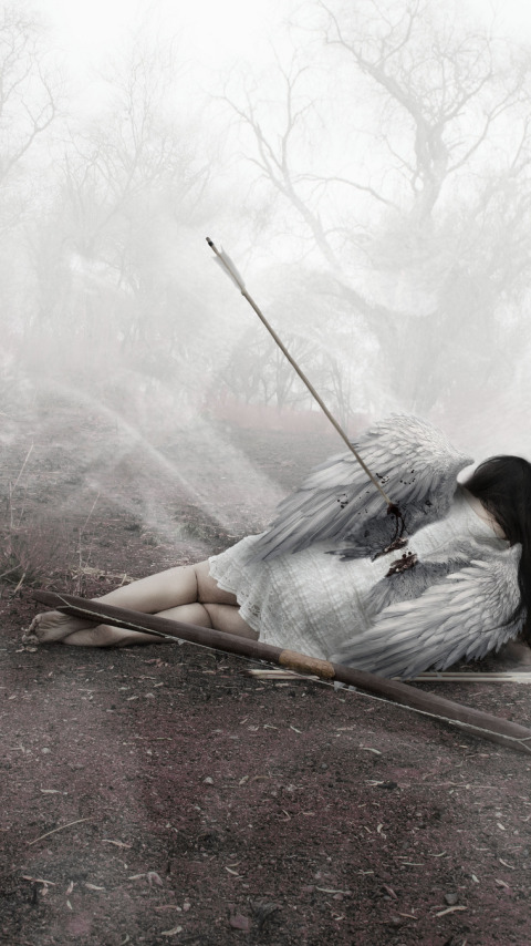 Назад к обои девушка, ангел, лук, стрелы
