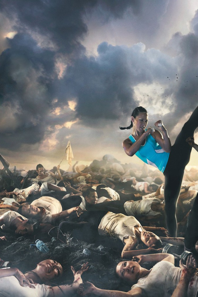 Назад к обои девушка, бой, удар