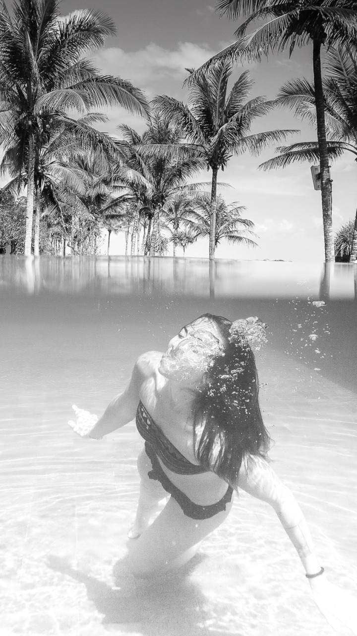 лето, девушка, бассейн, бикини, гостиница, Кокосовые пальмы
