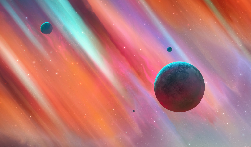 космос, звезды, туманность, фантастика, цвет, планета, спутник, арт