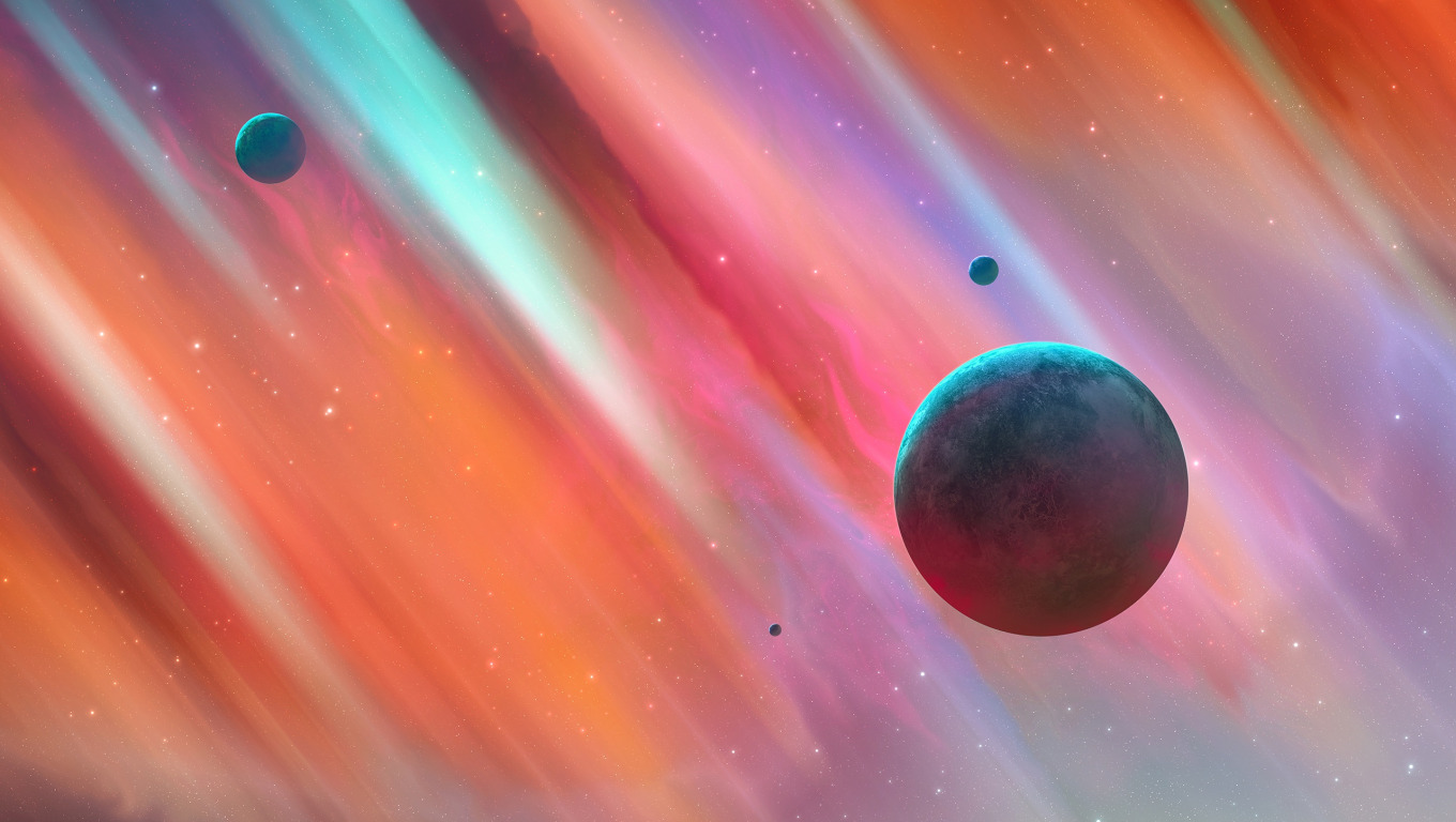 космос, звезды, туманность, фантастика, цвет, планета, спутник, арт