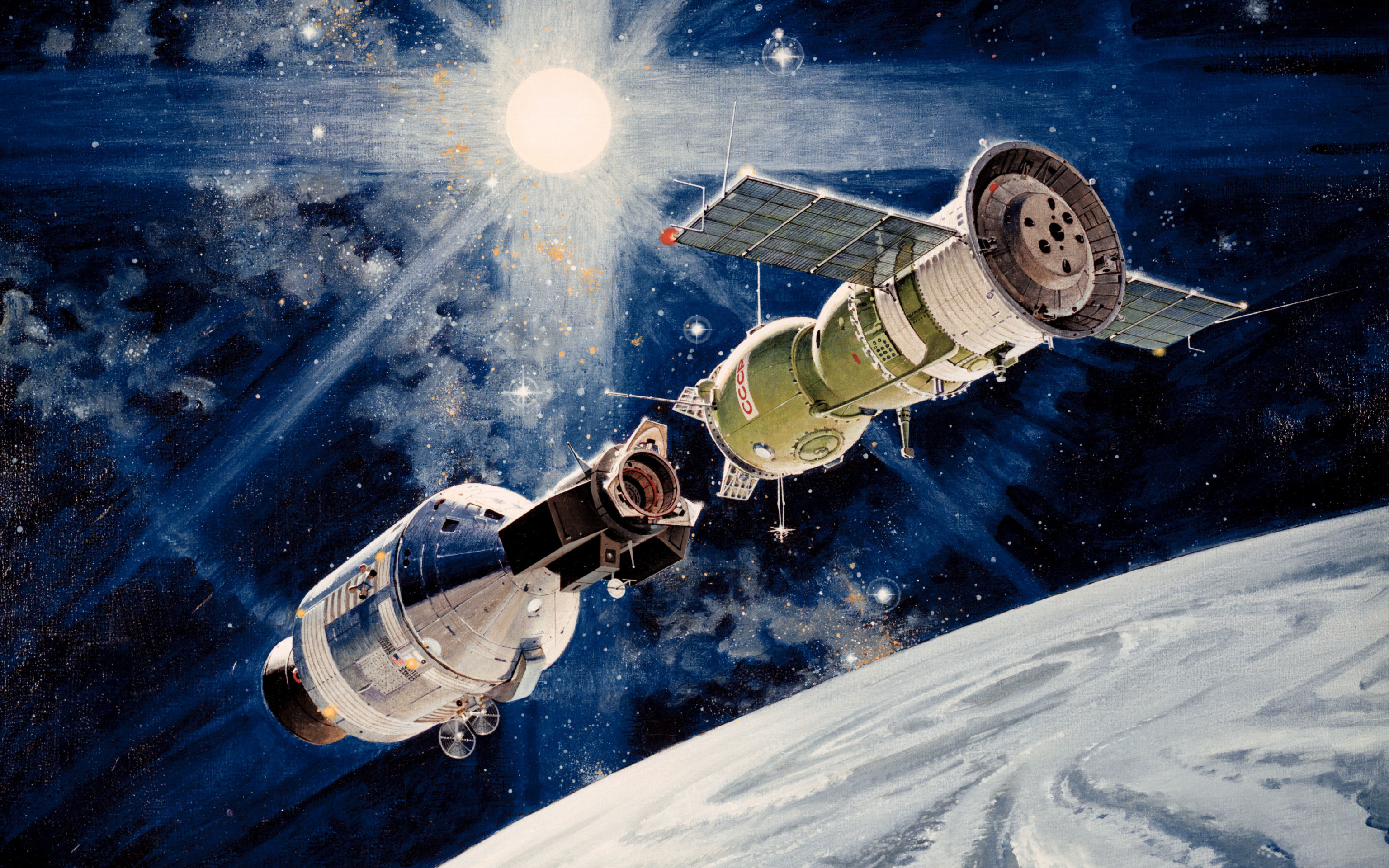 Назад к обои «рукопожатие в космосе», Экспериментальный полёт, «Союз-19», Союз- Аполлон, Apollo-Soyuz, «Аполлон»