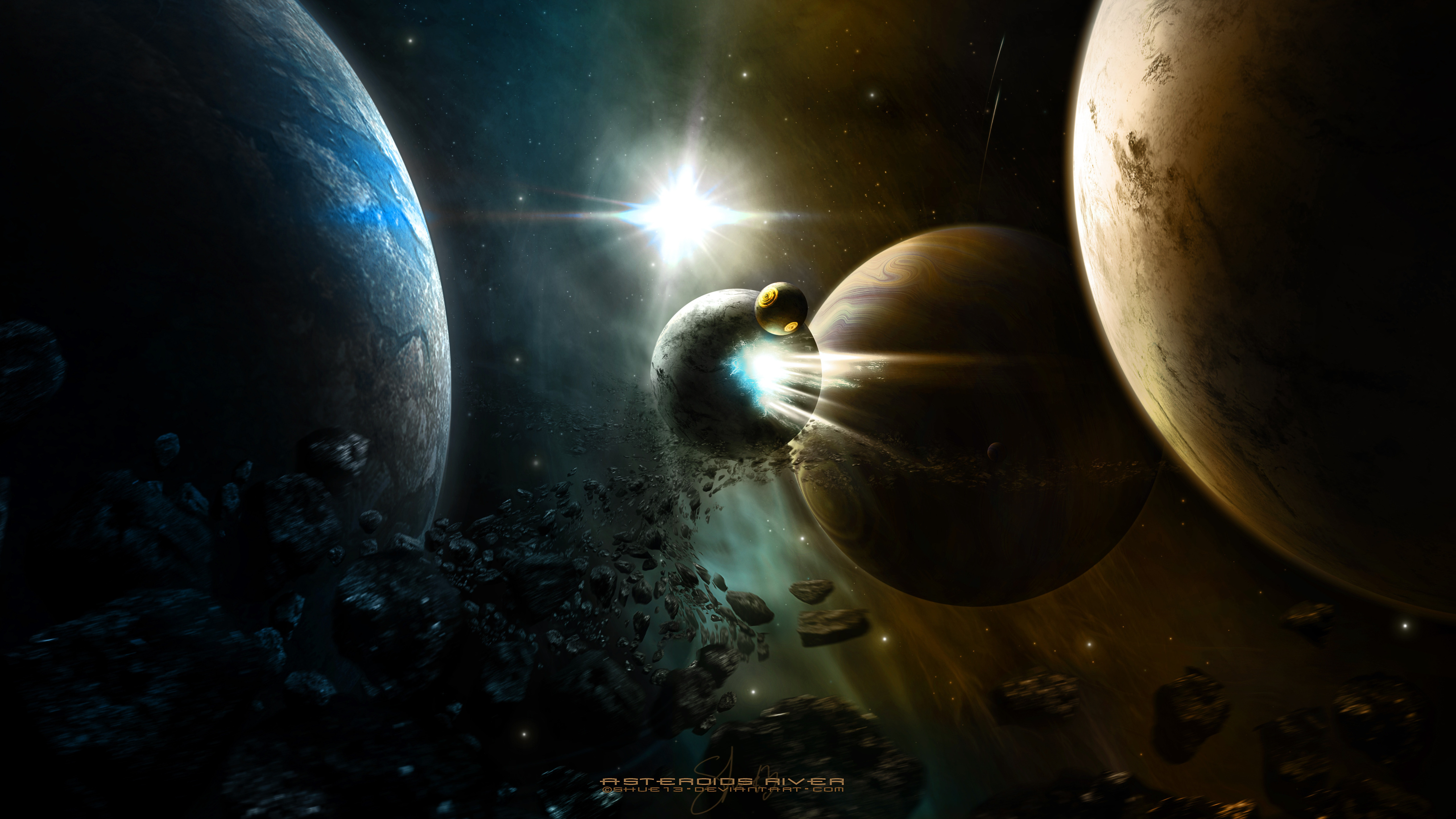 Назад к обои обломки, планета, астероиды, комета