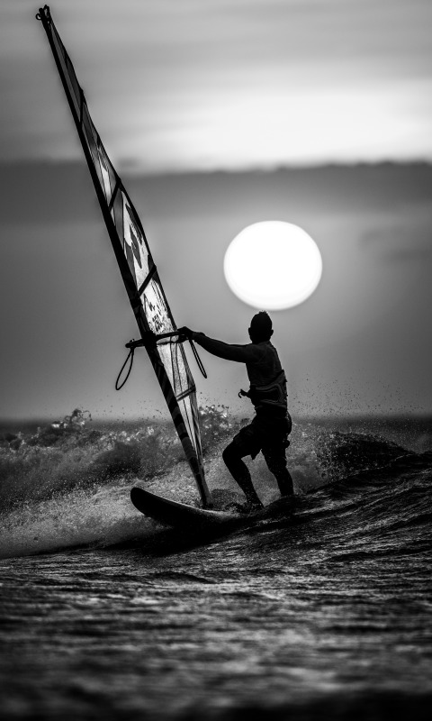 Назад к обои волны, облака, закат, виндсерфинг, экстремальный спорт