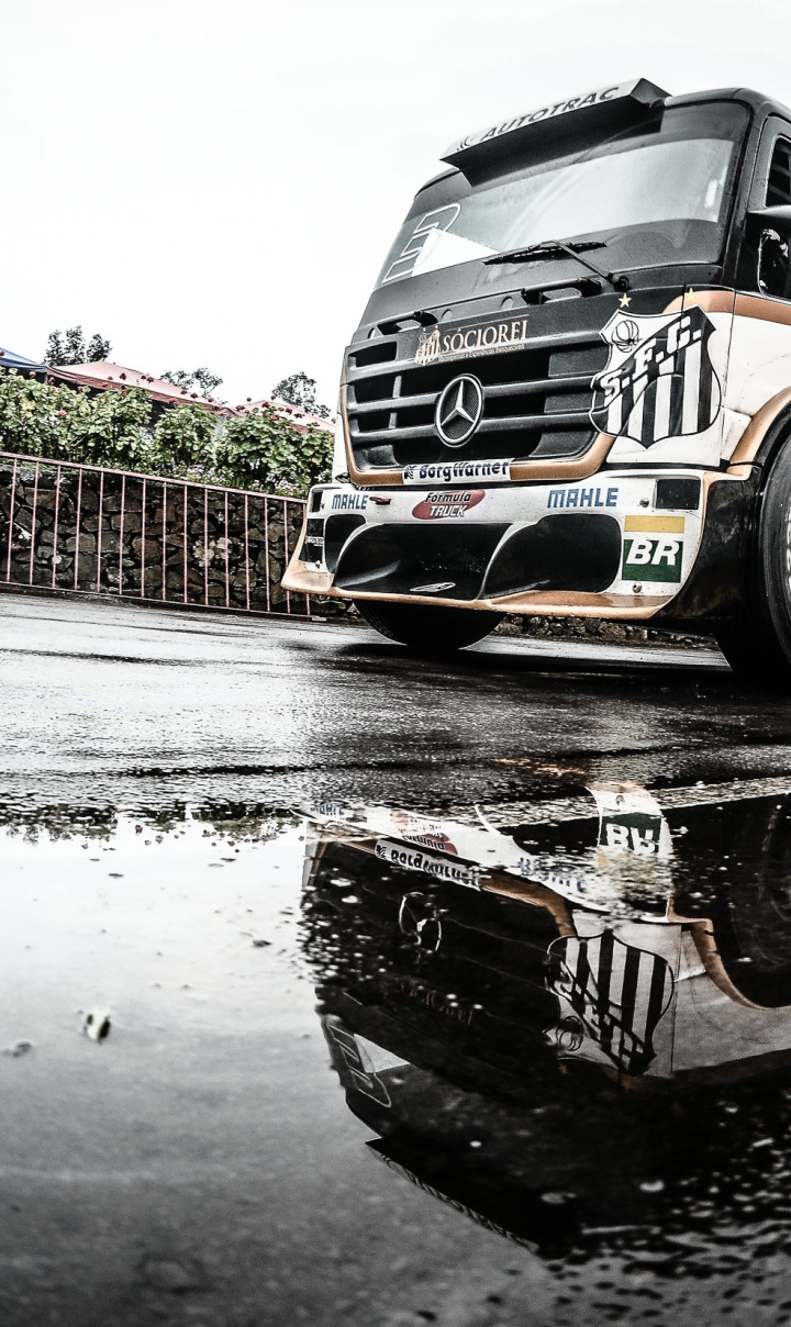 отражение, Mercedes-Benz, зеркало, лужа, экстремальный спорт, ABF Santos, Geraldo Piquet, Formula Truck