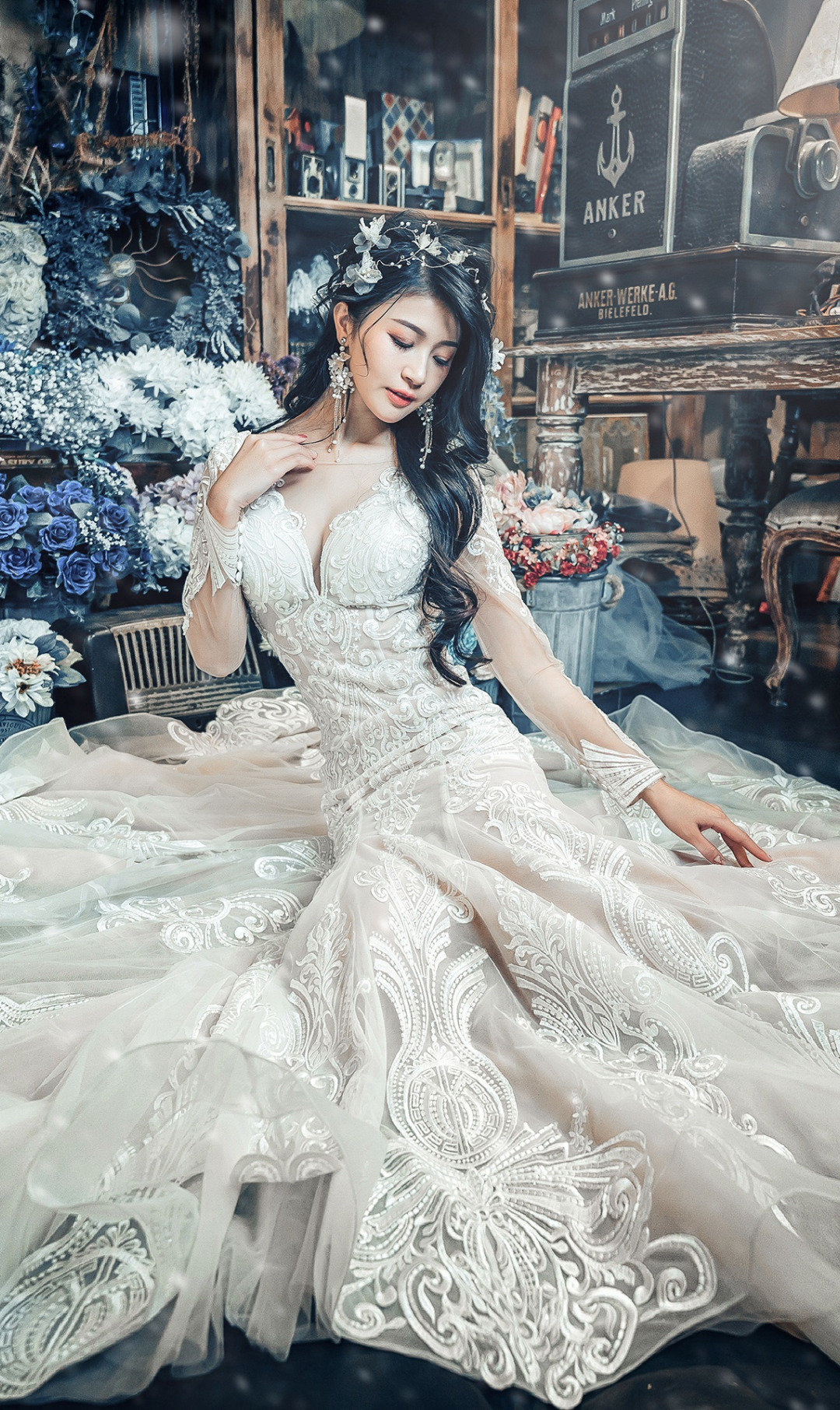 белый, грудь, девушка, украшения, цветы, поза, стиль, комната