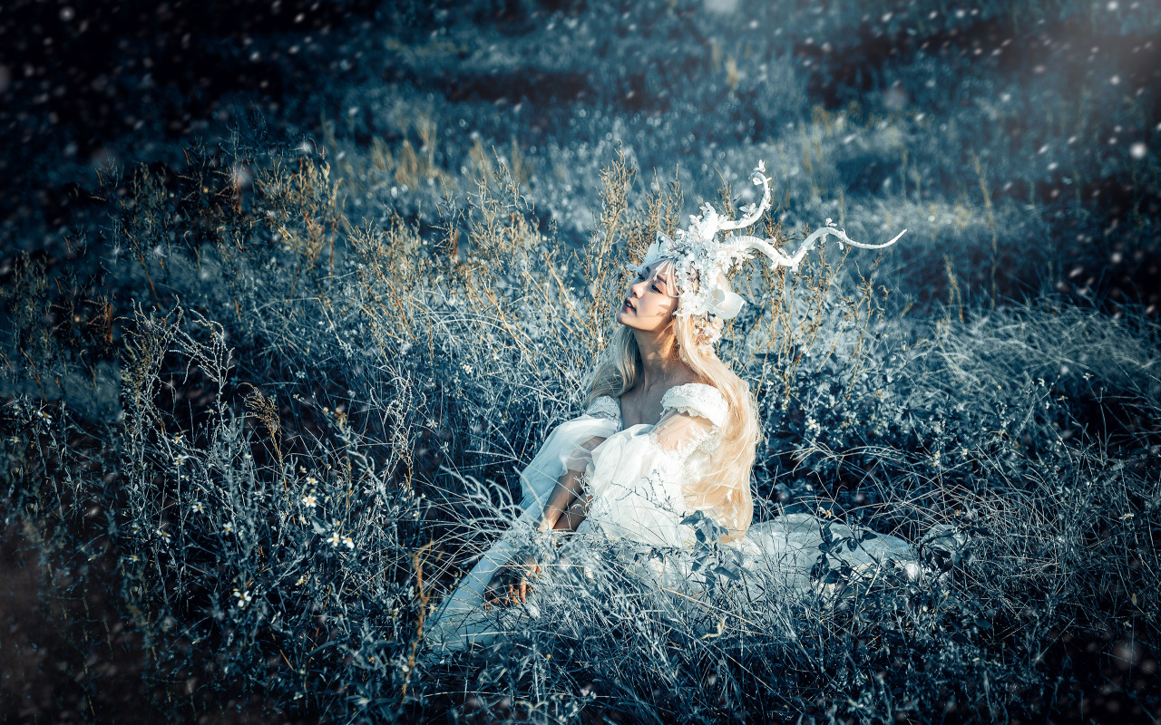 Назад к обои трава, девушка, свет, украшения, природа, лицо, поза, стиль