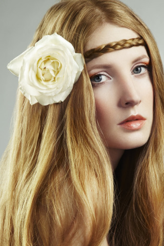 Назад к обои взгляд, девушка, цветы, лицо, косички, длинные волосы, белая роза