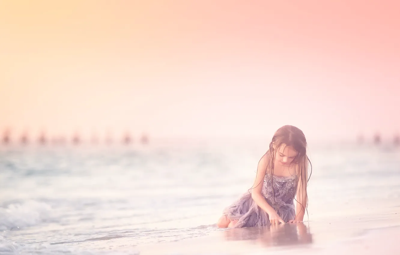Пляж, платье, девочка, meg bitton обои на телефон (фото, картинки)