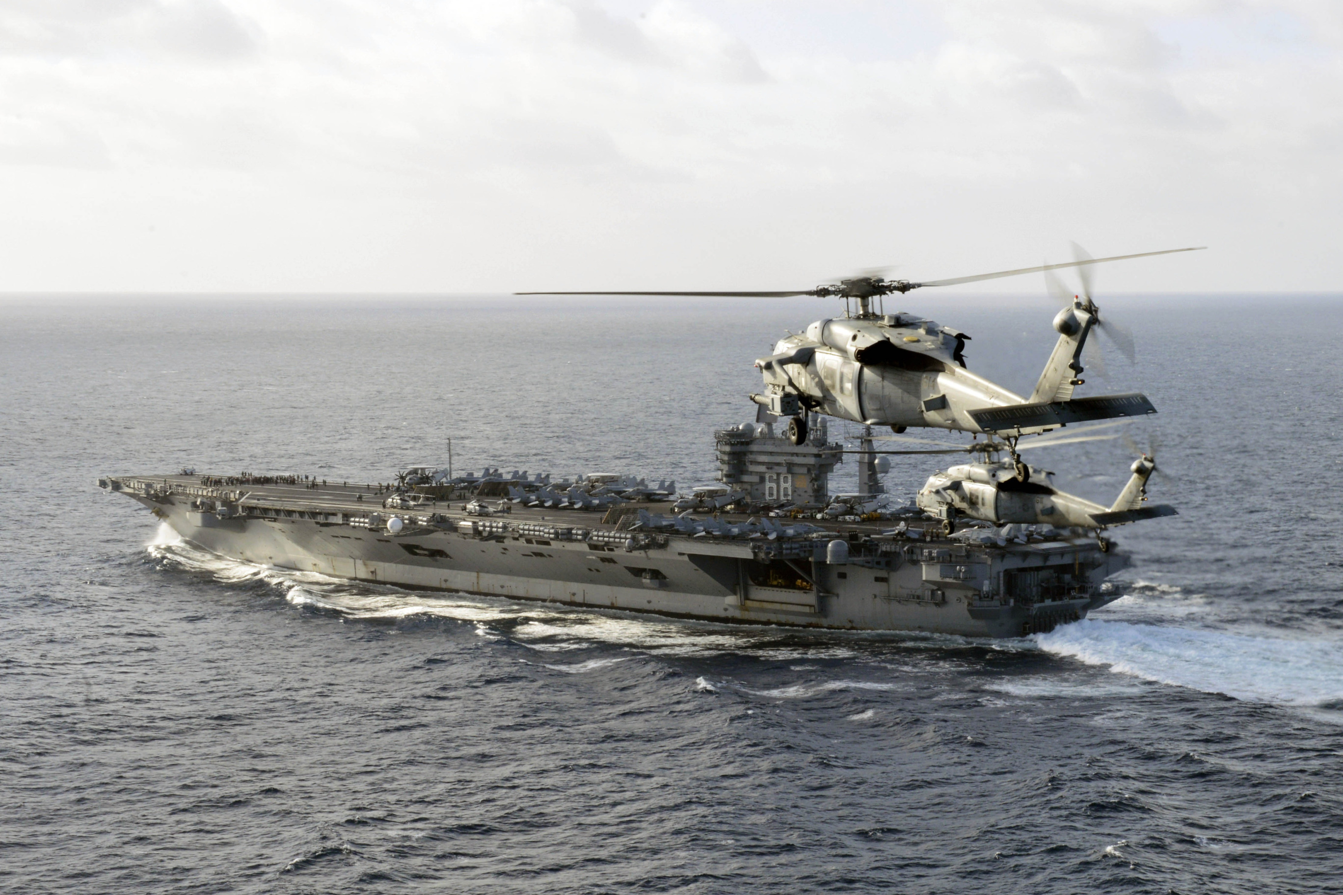 оружие, армия, флот, MH-60S Sea Hawk helicopter, aircraft carrier USS Nimitz (CVN 68)